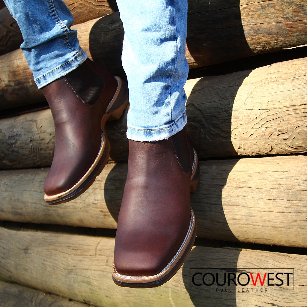 BOTA CHELSEA COURO HIDROFUGADO CAFÉ + CARTEIRA