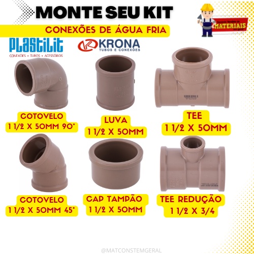 Conexões de Agua 25mm 3/4'' | Adaptador - Caps - Cotovelo 45º - Cotovelo 90º - Luva LL - Luva LR - Luva Correr - Tee - Redução | Plastilit ou Krona