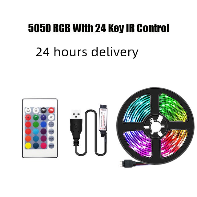 Estoque Pronto Fita LED USB 5V 24 Teclas Controlador 5050 RGB TV Retroiluminada Flexível Barra De Luz B + N