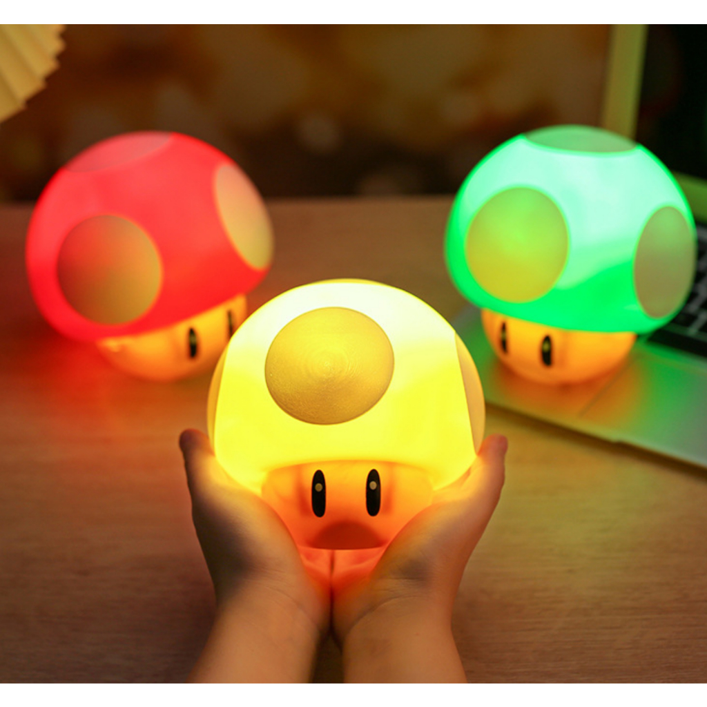 [Estoque Pronto] SELEADOER Super Mario com Carregamento USB Luz LED de Voz Luz Nocturna Luz Cogumelo Três Irmãos Presente para Crianças, Presente de Aniversário
