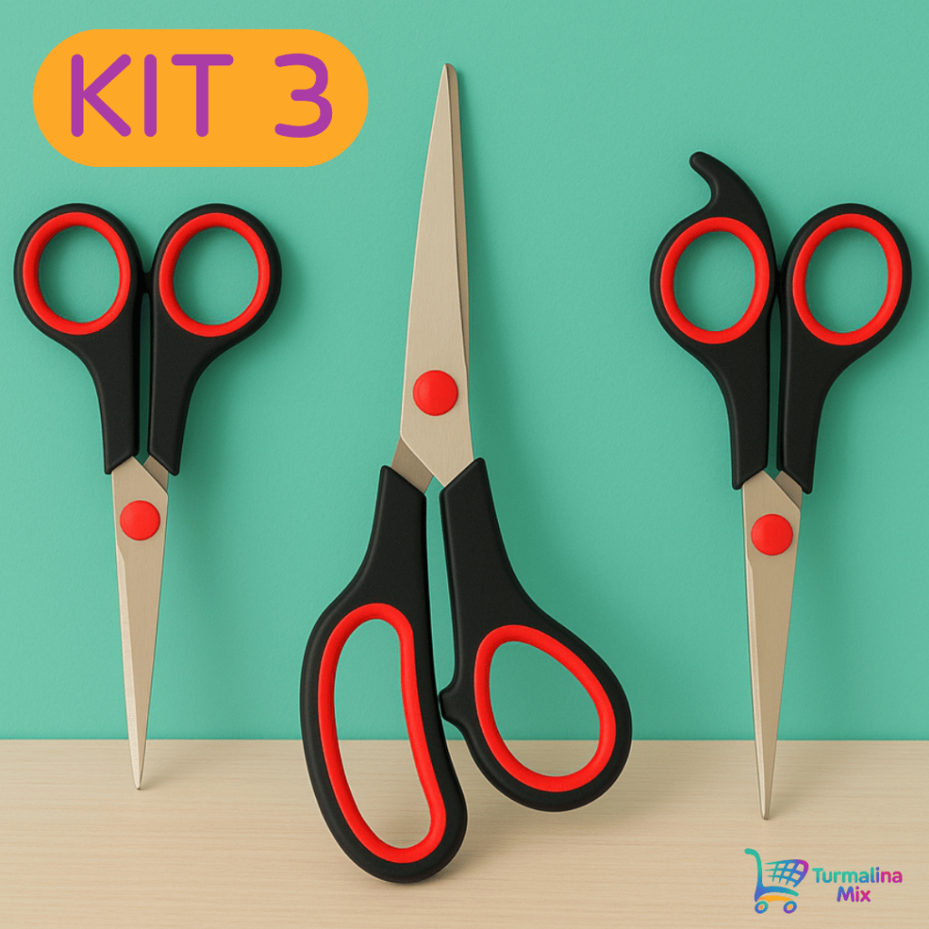 Kit 3 Tesouras Aço Inox Corte Costura Profissional Artesanato E Domestico 5,5" 7,5" 8,5"
