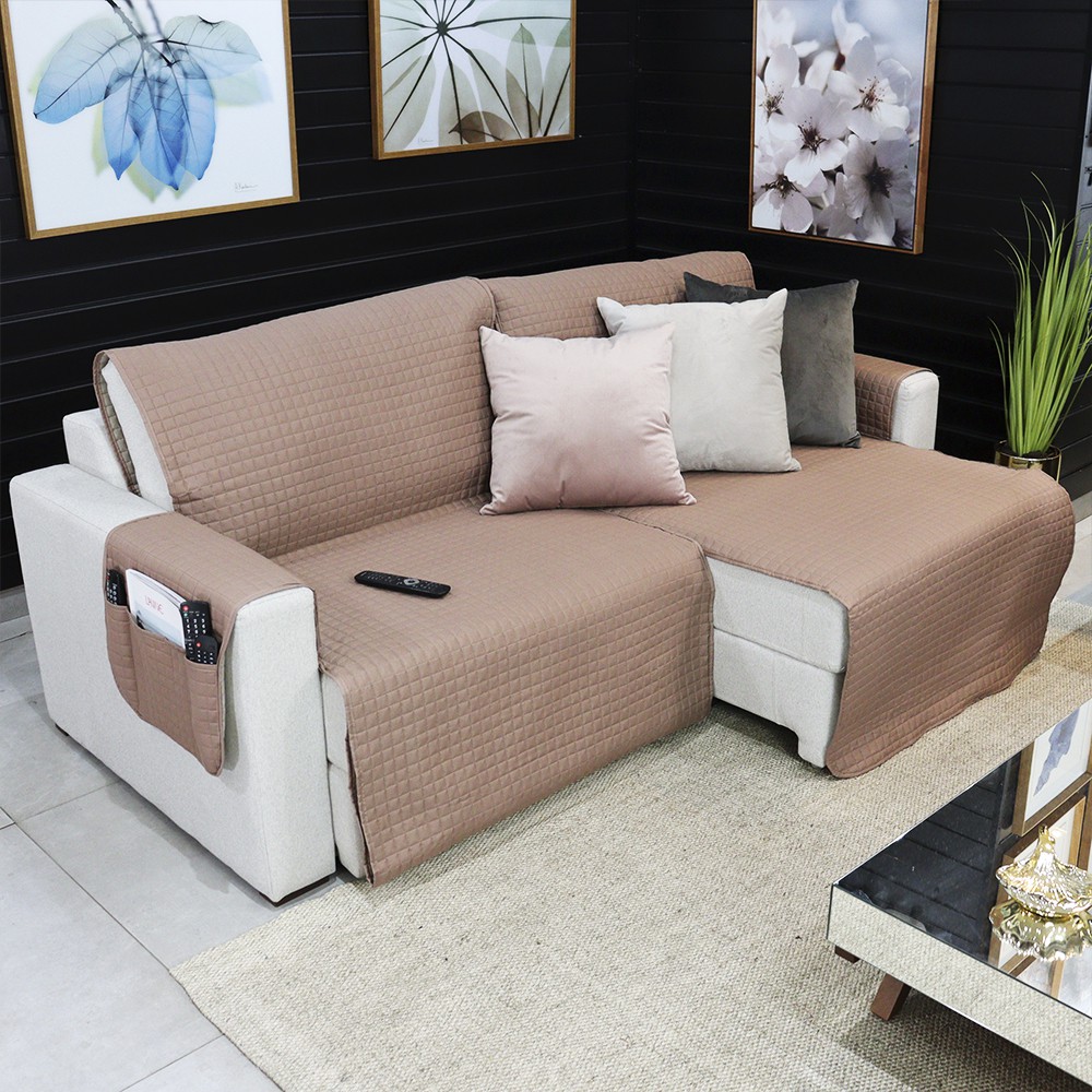 Protetor Para Sofá Retrátil 1,80 m (2 módulos de 90 cm) - Xale Tamanho Universal - Dupla Face - 2 Cores - Capa com Porta Objetos - Lavive