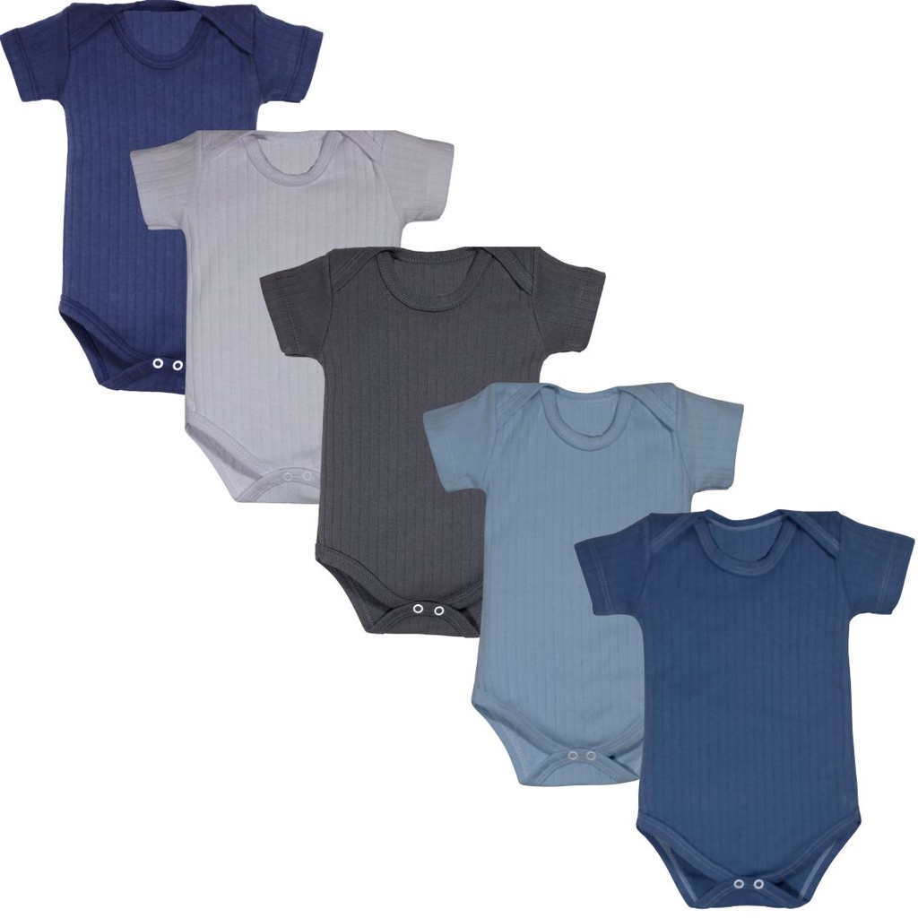 Kit 5 Pecas Body bebe Manga Curta Canelado Liso Suedine Algodão Poliéster