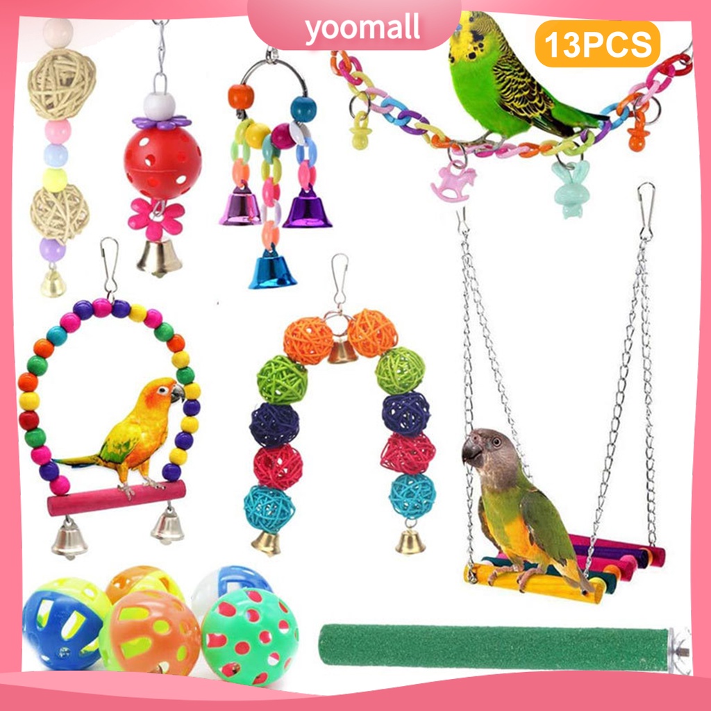 YM 13pçs/Conjunto Saudável Papagaio Pássaros Kit De Brinquedo Suprimentos Para Pendurado Sepak Takraw Sinos Suporte Poleiro Fácil Instalação