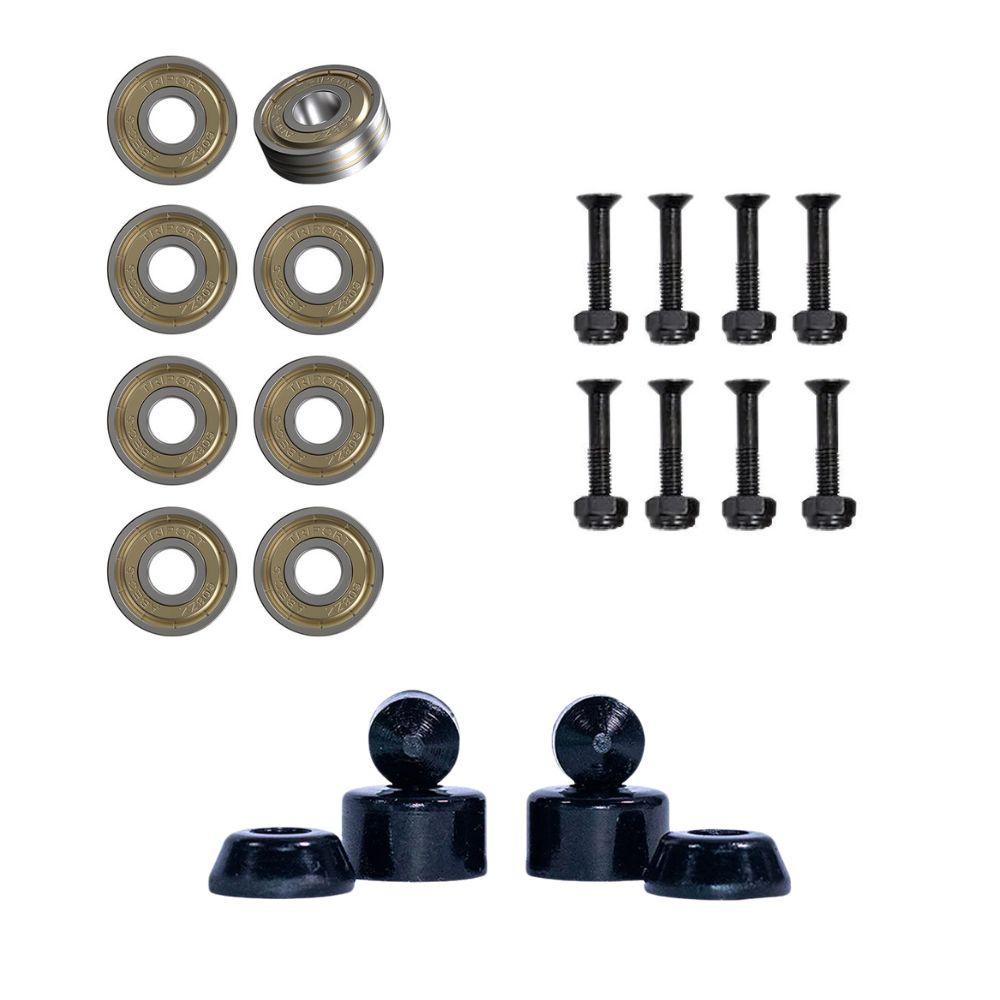 Rolamentos Semiprofissinal Abec 5 com Parafusos de Base Importada Philips Porca 10" e Amortecedor para truck de skate Hard Cilíndrico 94A