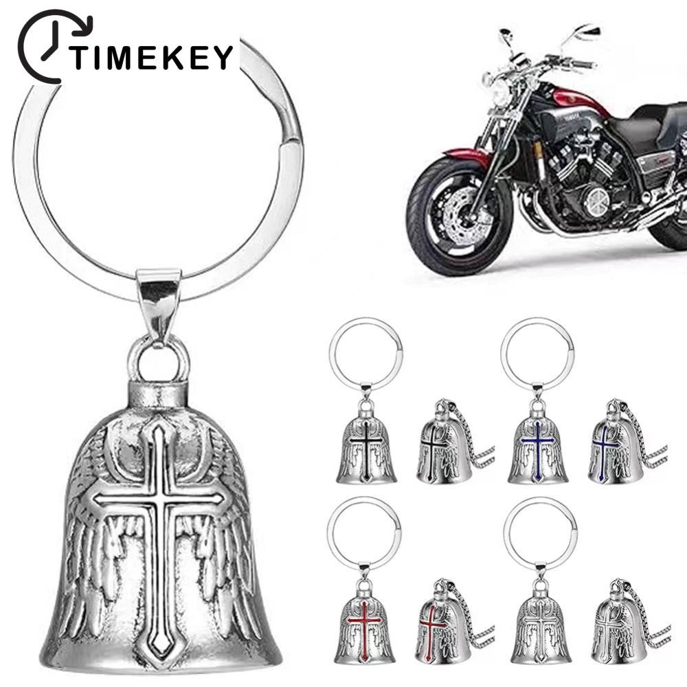 TKEY Moda Cruz Guardião Asas De Anjo Sino Da Motocicleta Chaveiro Motociclista Cavaleiro Sorte Jóias Acessório Presente