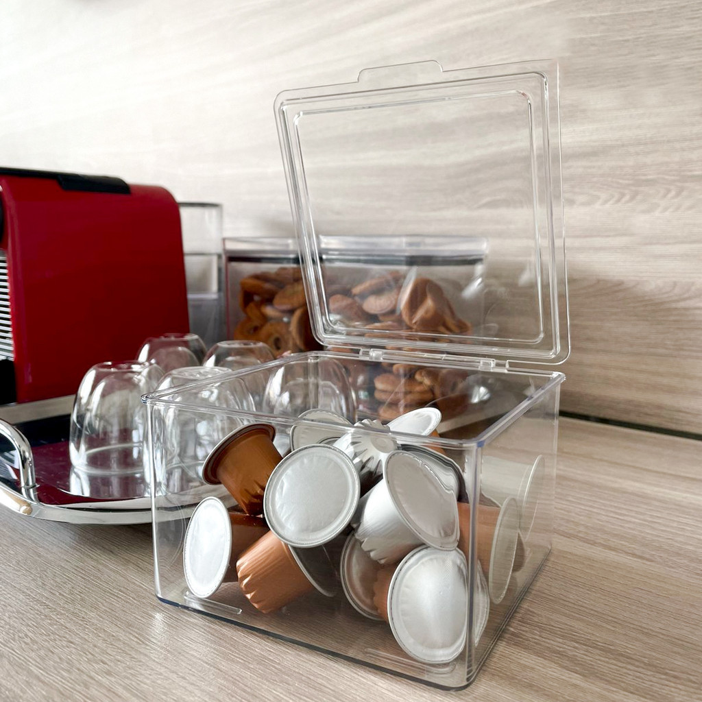 Caixa Organizadora Acrílica Quadrada Cubo 13x13x13 com Tampa Porta Cosmeticos Utensilios Capsulas de Café