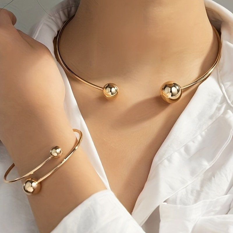 2PCS Necklace Plus Pulseira 2PCS Conjunto De Jóias De Moda 18k Com Punho Ajustável Acessórios Para Festa De Perfeita Decoração O Verão