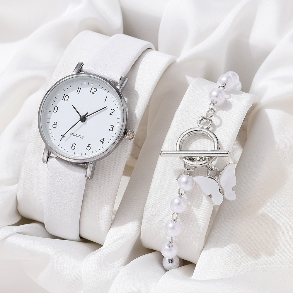 2 Pcs Mulheres Assistir Moda Tendência Relógio De Couro PU Romano Estudante Quartzo Pulseira Conjunto De Pulseiras