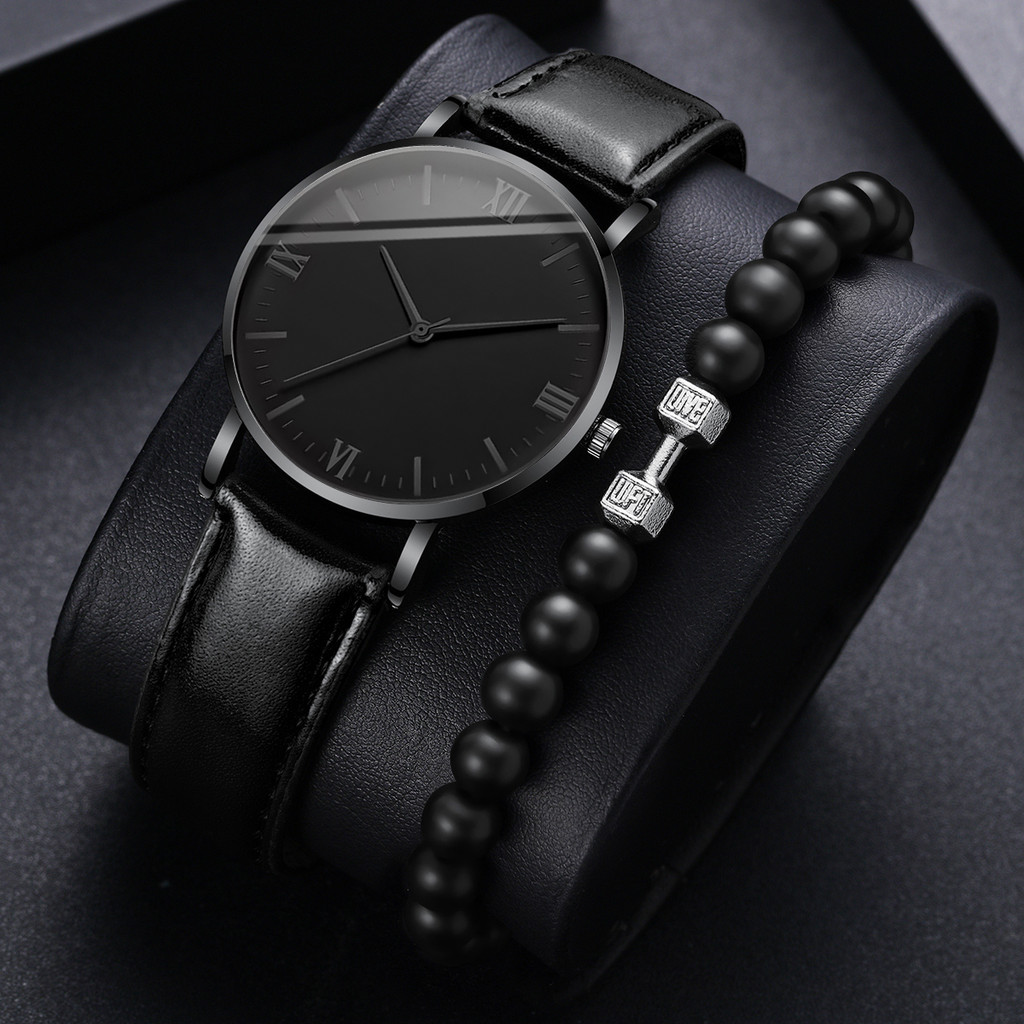 2PCS/Set Fashion Roma Dial Relógio De Moda Casual Faixa De Couro Pulseira De Quartzo
