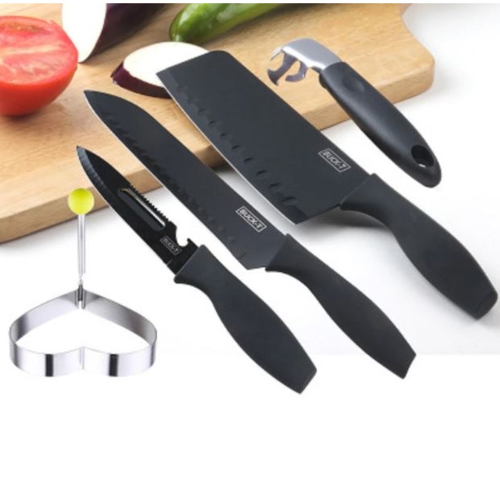KIT Conjunto de Facas e Acessórios Em Inox Com 5 Peças Cor Preta