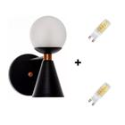 Kit 2 Unidades Arandela Luminaria De Parede Moderna Preto e Dourado Com Globo Jabuticaba