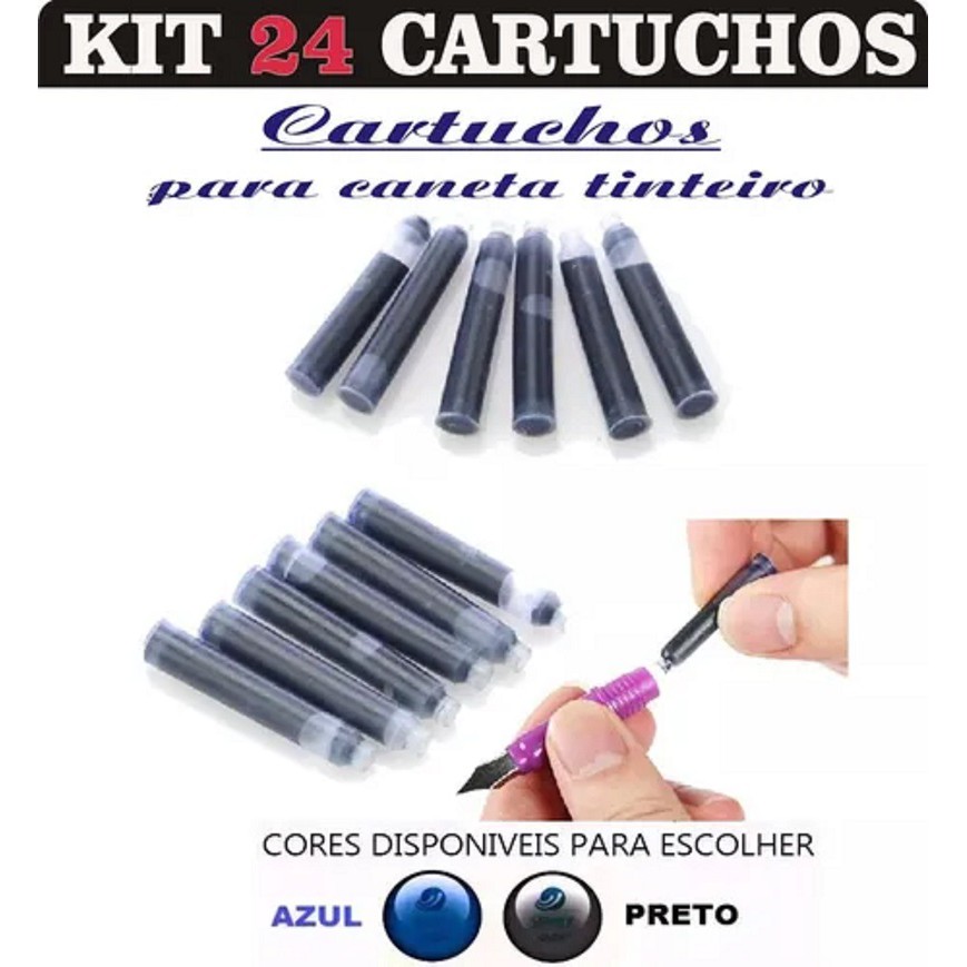 Kit 24 Cartuchos Tinta Carga Caneta Tinteiro Azul - Preto