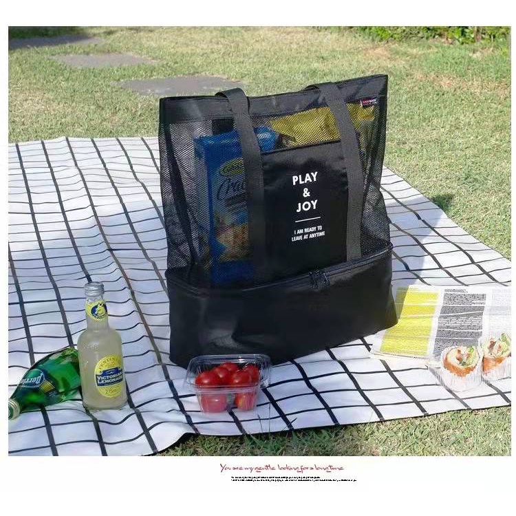 Bolsa De Praia Piscina Preta Térmica De Tela Alça Ecologicamente Correto E Reciclável Reutilizável