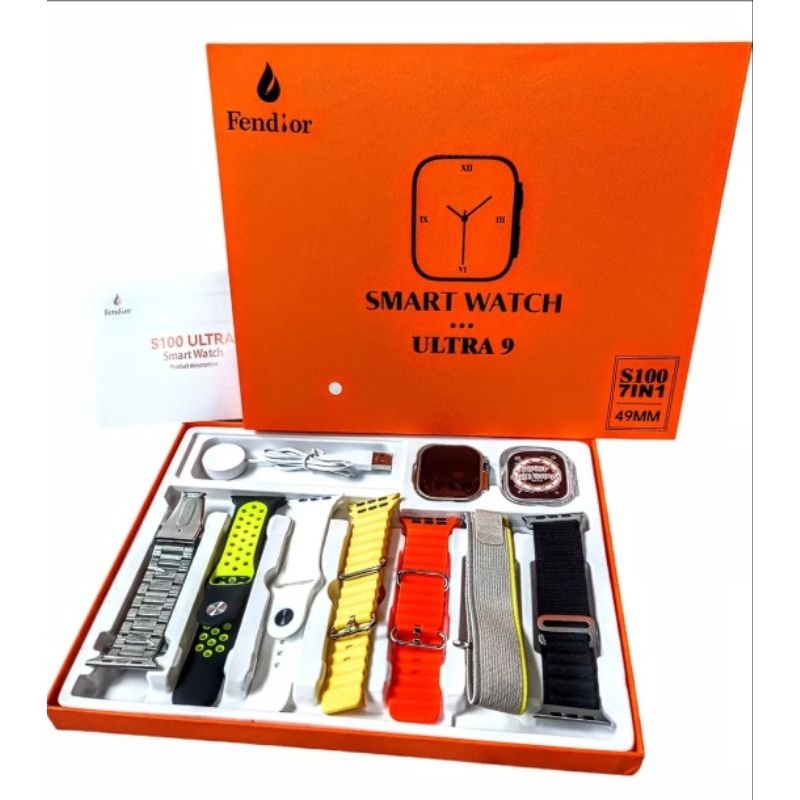 Relógio smartwatch Inteligente séries 9 ultra S100 kit com 7 sete pulseiras lançamento