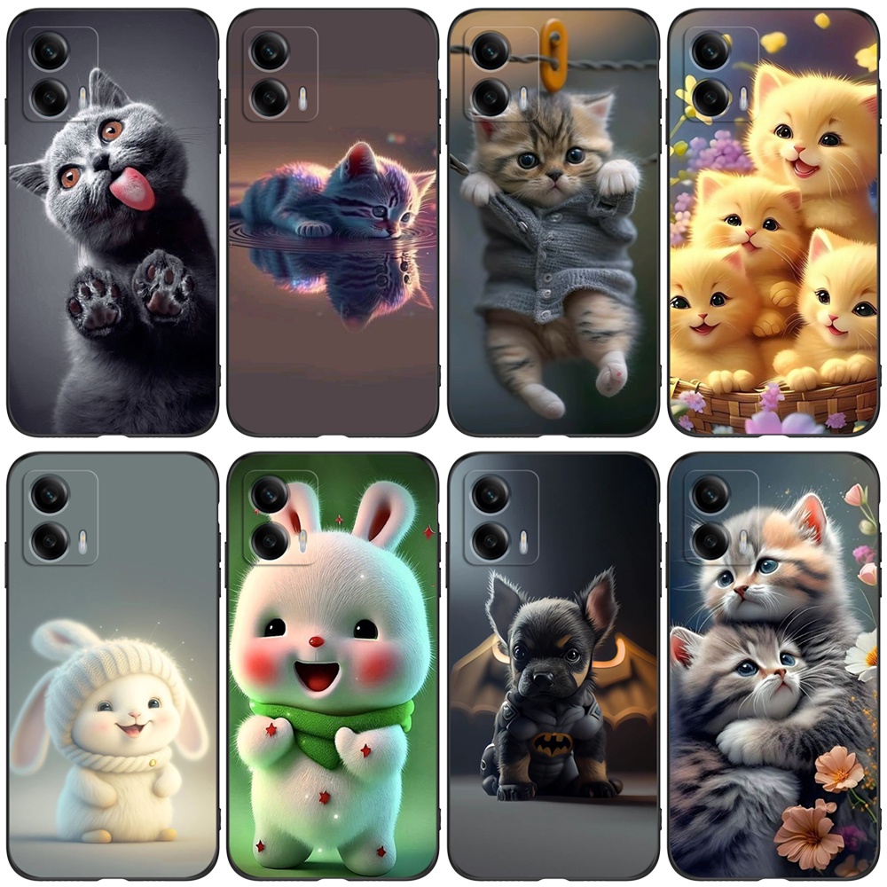 Capa De Silicone Macia Para Telefone Motorola G53 G73 5G MOTO Gatos , Cães E Coelhos Bonitos