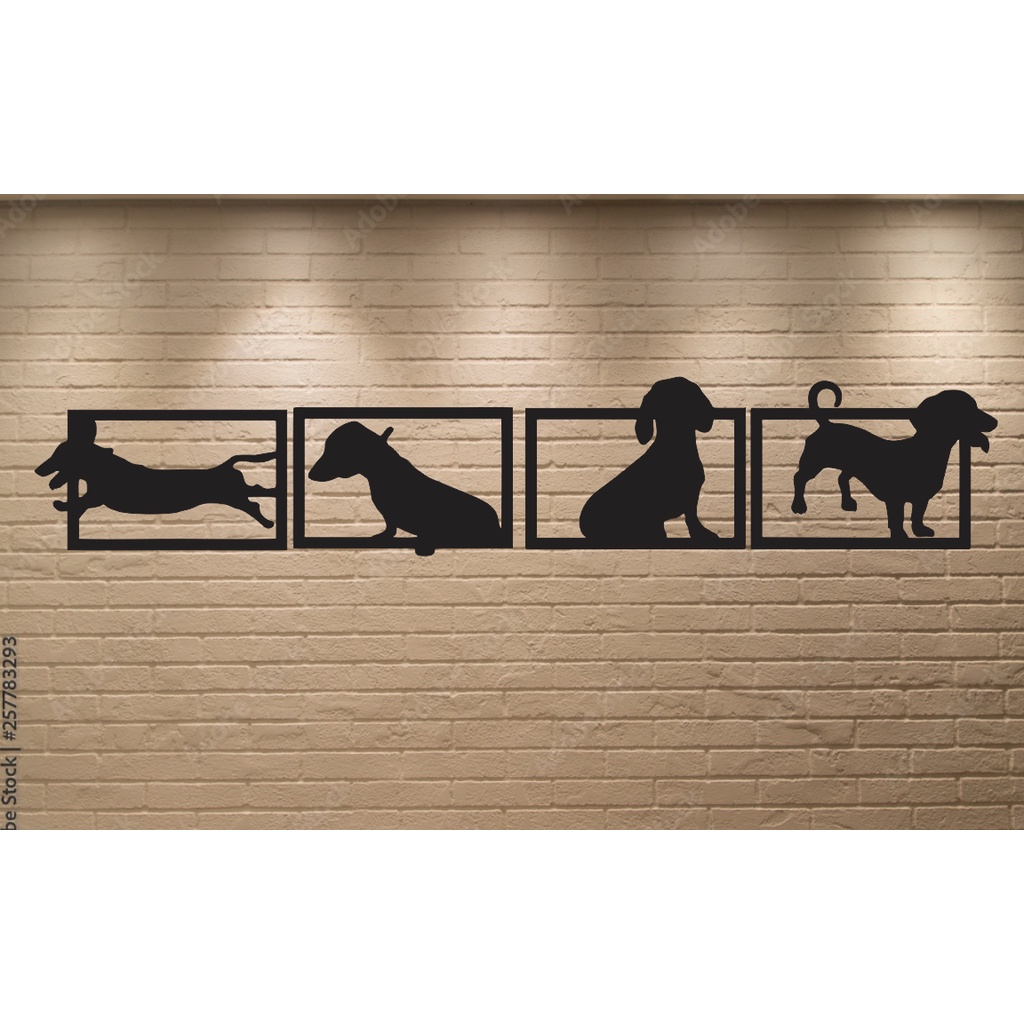 Kit 4 Quadros Vazados Cachorro Salsicha Pet Dog MDF Decorativo 30x20