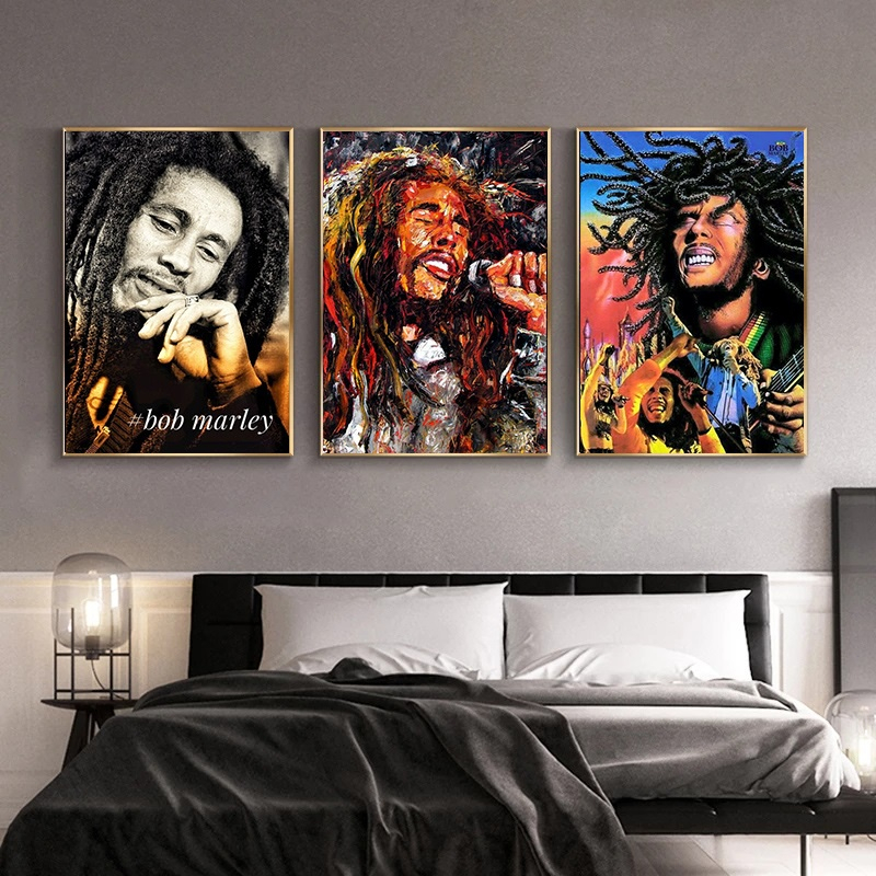 Quadros Decorativo 3 peças 60x40 Mosaico Mdf Alta Resolução Full HD abstrato moderno colorido bob marley para casa sala quarto hall