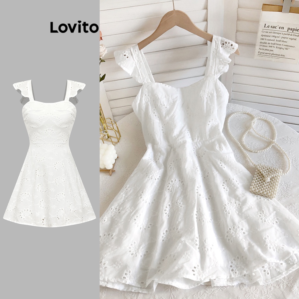 Lovito Boho Vestido com Amarração e Bordado de Entremeio Dupla Camada para Mulheres L74ED195