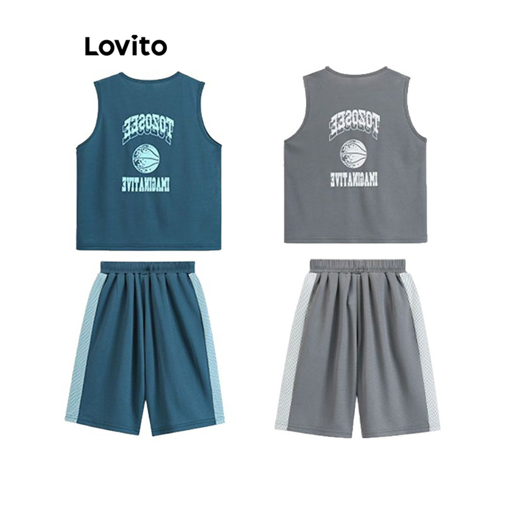 Lovito Conjuntos de shorts femininos esportivos com padrão liso e contraste em malha colorida LNA76016