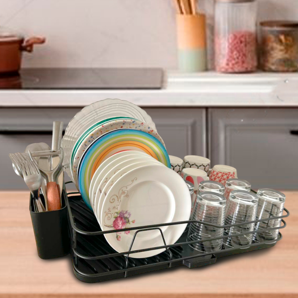 Escorredor De Louças Organizador De Cozinha Moderno Com Porta Talher e Bandeja