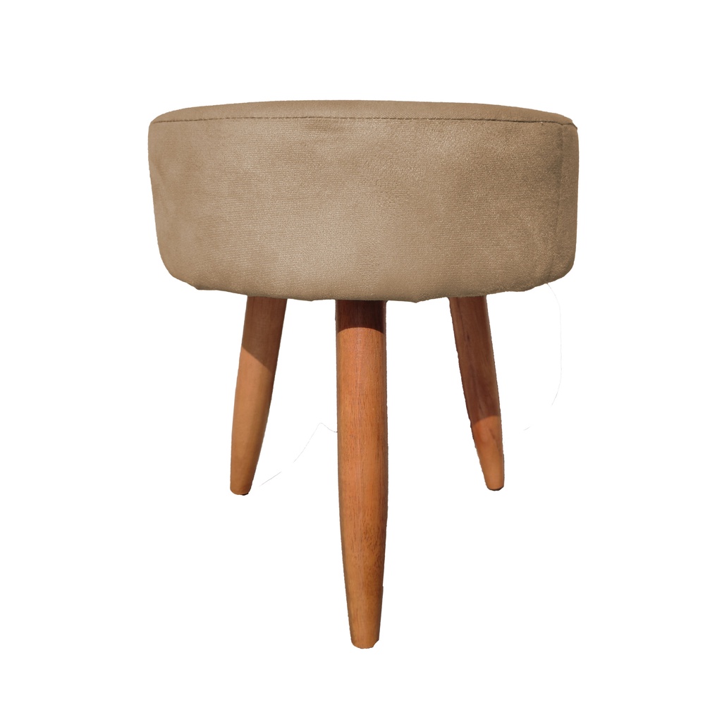 Puff Redondo Decorativo Retrô Pés Palito Bege Escuro - Leal Decorados