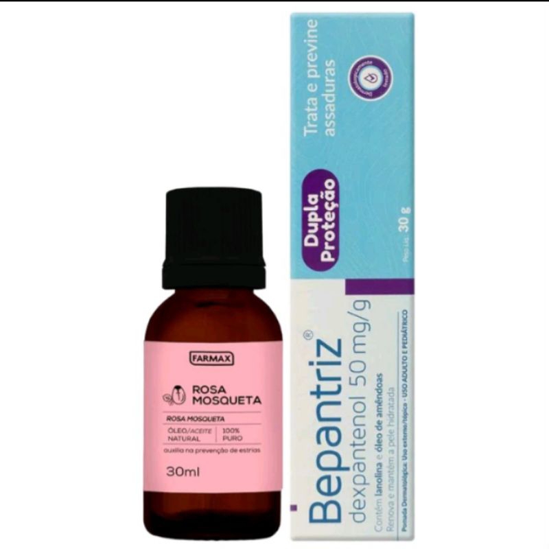 Kit Óleo de Rosa Mosqueta 100% puro farmax Pomada Bepantriz dupla proteção clareamento, manchas, rejuvenescimento, acne