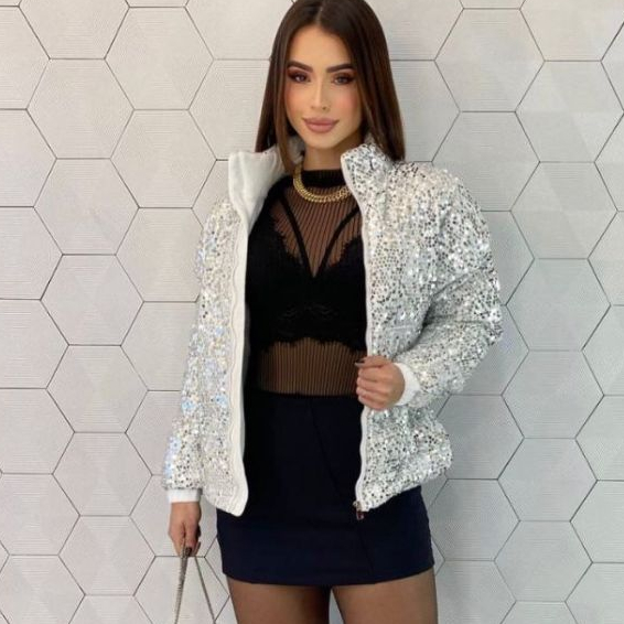 Jaqueta Bomber Cirre Casaco com Ziper Feminina - Moda Balada de Inverno