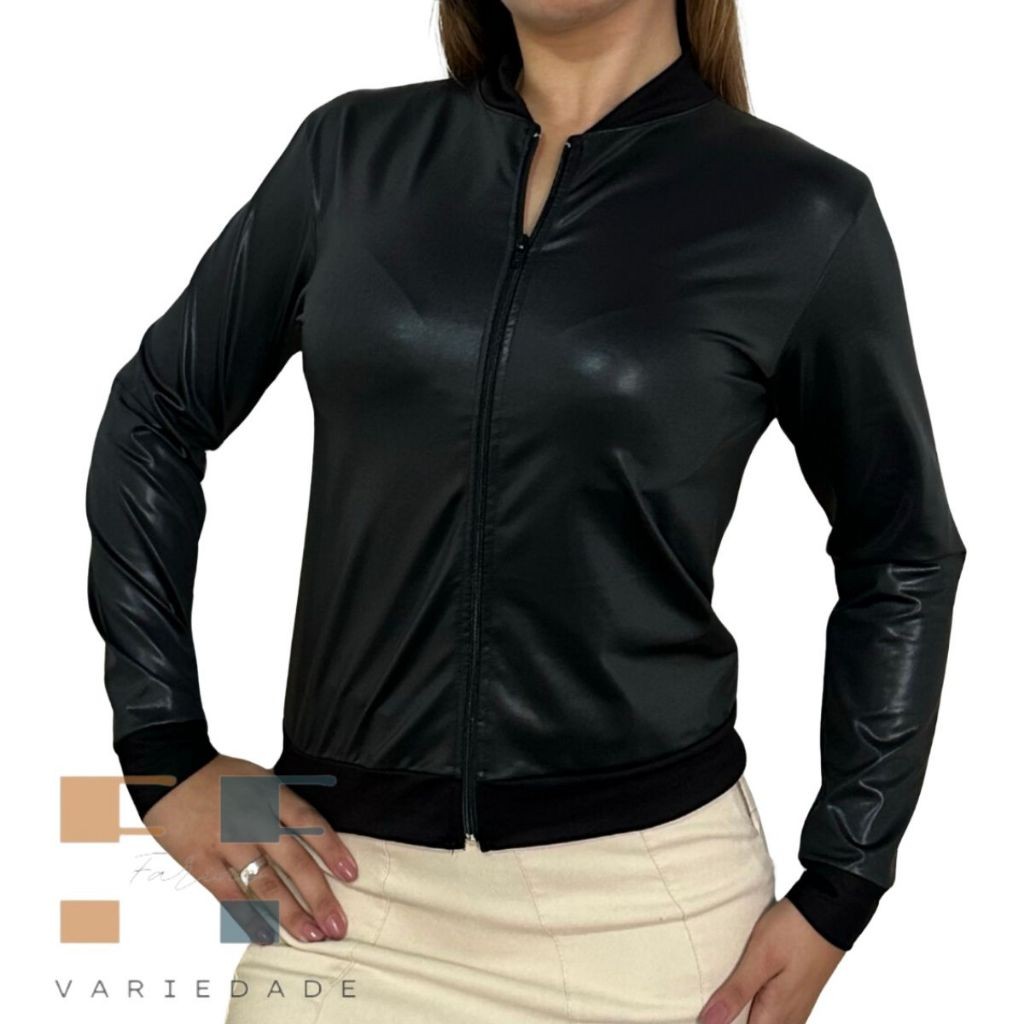 Jaqueta Couro Feminina Preto Moda Inverno Com Zíper Casaco Tendência