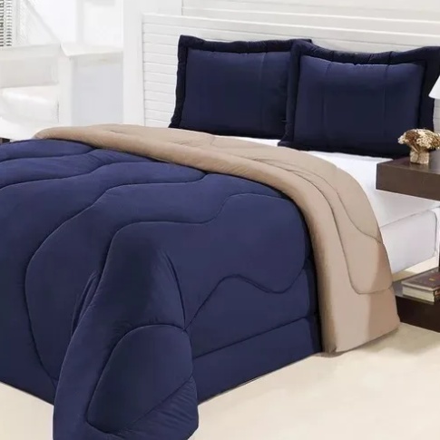 Edredom Em Malha Gel 3 Peças Casal Queen 2,20 X 2,40 - Azul Marinho Com Avelã
