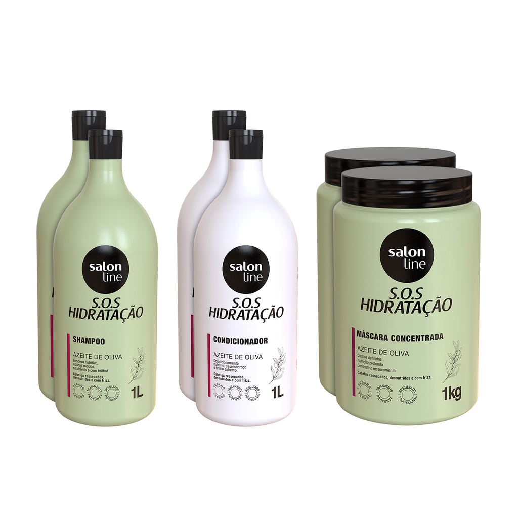 Kit com 3 Máscaras SOS Hidratação: Ultra Cachos + Turbinada + Bio-Reconstrução Salon Line