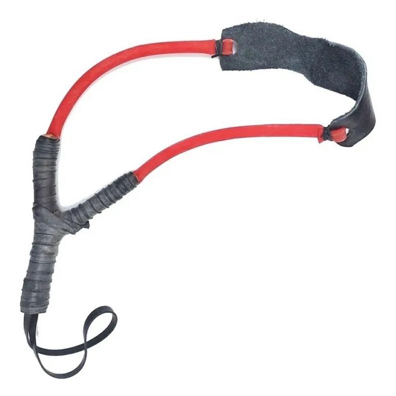 Estilingue Atiradeira Profissional de Caça em Metal, PVC e Couro + 2 Esferas de Treino