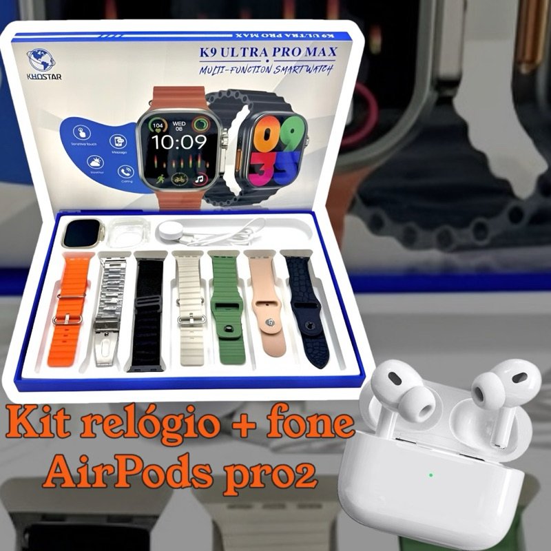 Smart Watch K9 Ultra Pro Max Série 10 49mm Com 7 Pulseiras tela amoled. + fone de ouvido AirPods pro2