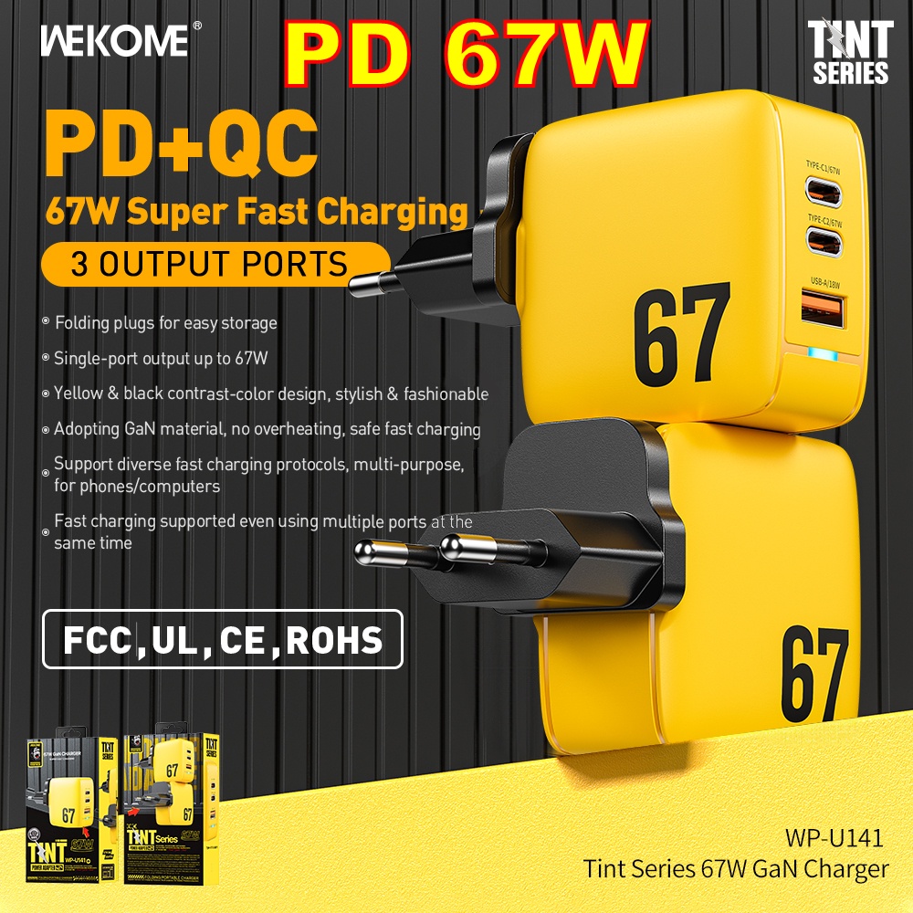 WEKOME 67W Carregador GaN Carga Rápida Tipo C QC4.0 PD 3.0 Adaptador USB Para iPhone Macbook