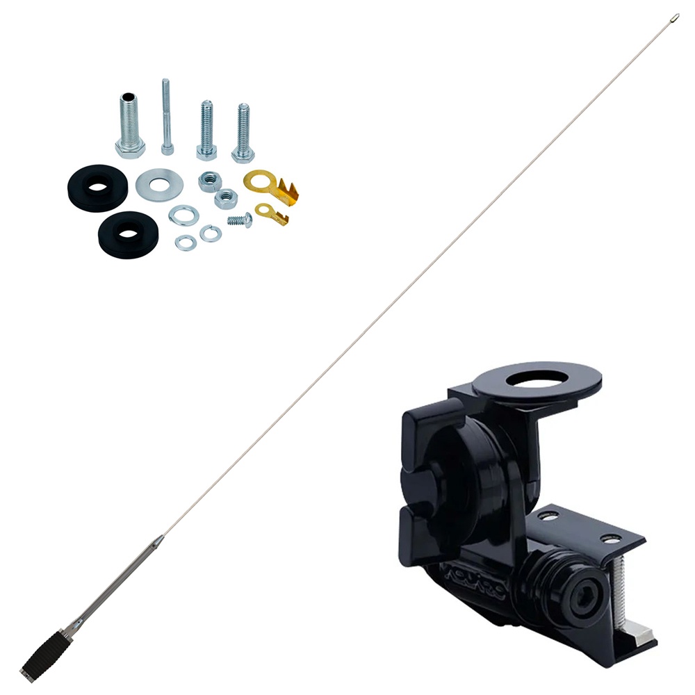 Antena Móvel Aço Inox Estética Enfeite 1,50m + Suporte Caminhonete Pickup Carroceria Adaptável + Parafuso