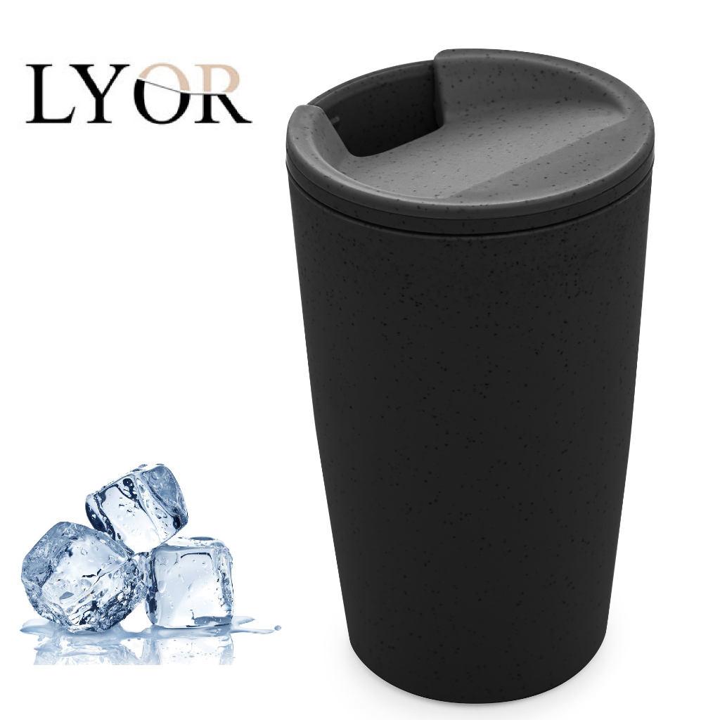Copo Térmico de Bambu Natural Ecológico Preto Com Tampa e Parede Dupla Isolada Café Chá Lyor 500 ml