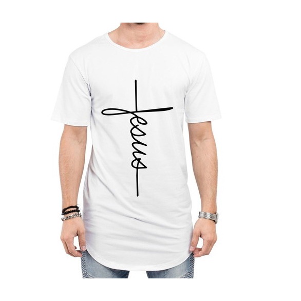 Camiseta Long Line Jesus Cristã Moda Masculina Camisa 100% Algodão Ótima Qualidade Entrega Rápida