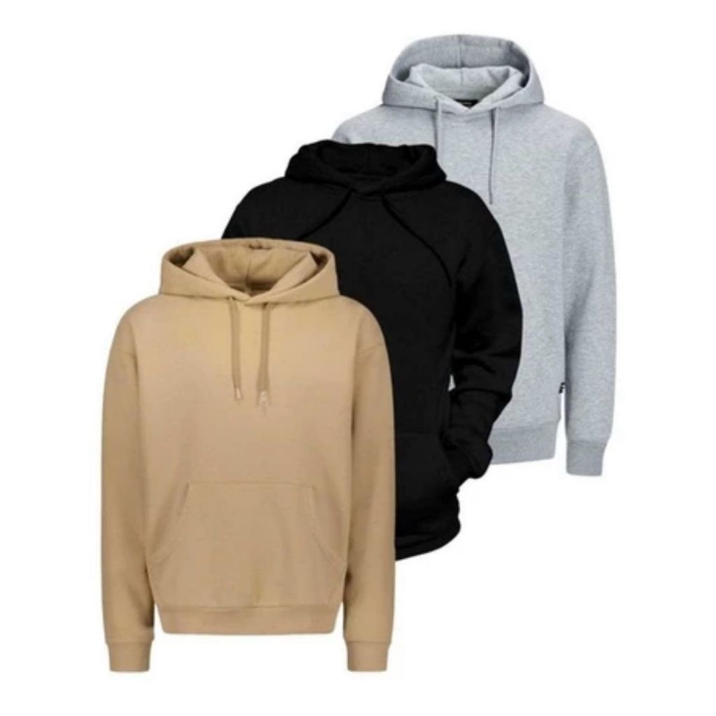 Kit 3 Blusa de Frio Moletom Liso Relaxado Casaco Canguru Fechado Com Capuz Inverno
