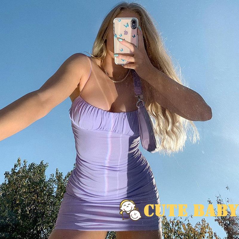 Ephemeral- Vestido Bodycon Sexy Feminino Com Alça Spaghetti Ruched De Cor Lisa Elástico Mini Vestido Clube