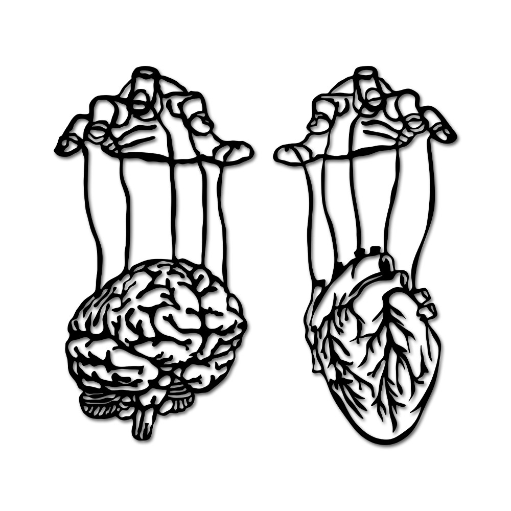 Aplique de Parede Cérebro e Coração Em Madeira Mdf 3mm