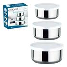 Conjunto De Potes Tigela Inox Redonda Com Tampa 3 Peças