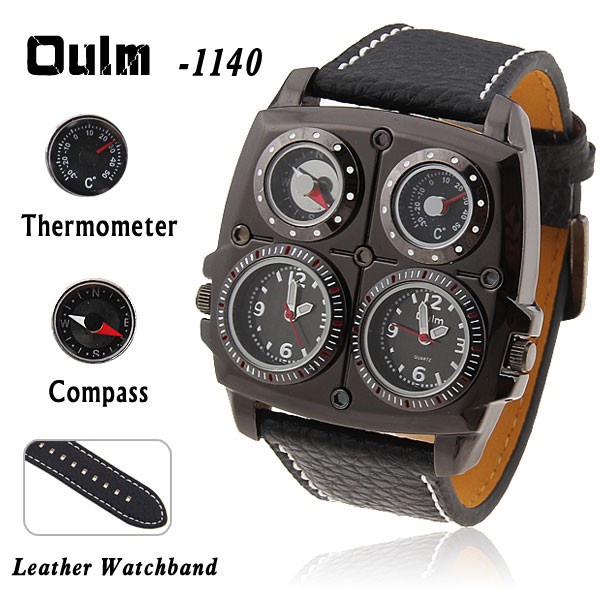 Oulm Relógios Dos Homens Dos Esportes Top Marca De Luxo 2 Fuso Horário Relógio De Quartzo Bússola Decorativa Relógio De Pulso Masculino