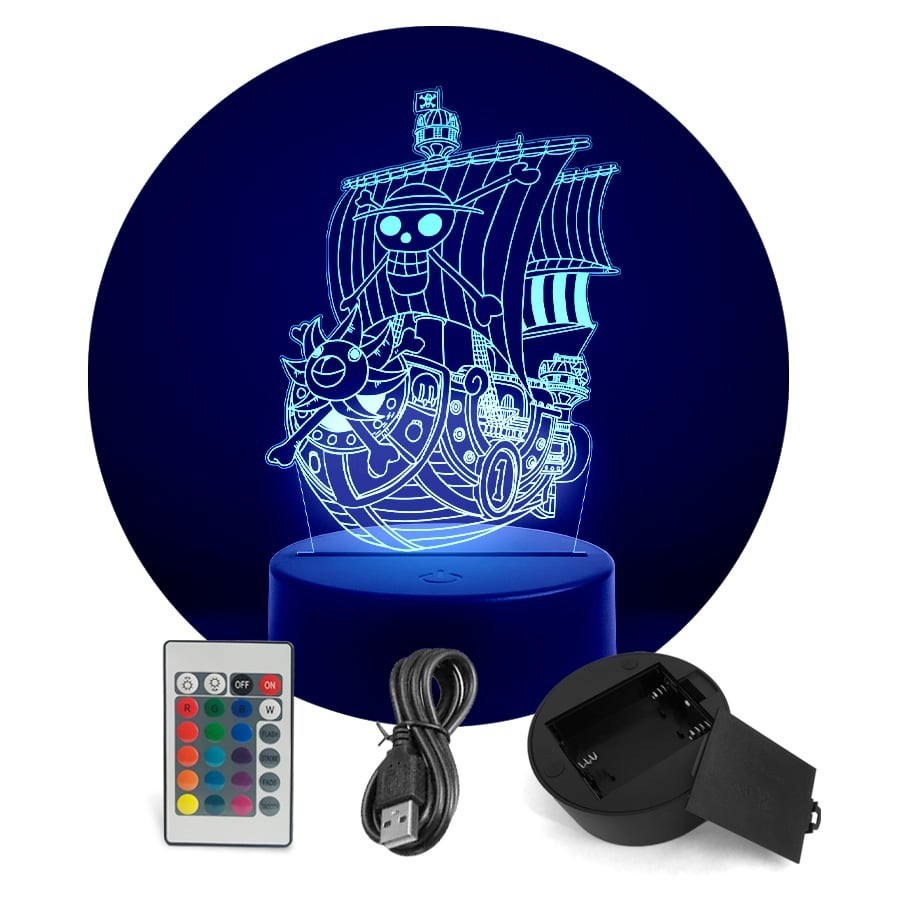 One Piece Luminária Led de Mesa 3D Navio Luffy 16 cores + controle Abajur