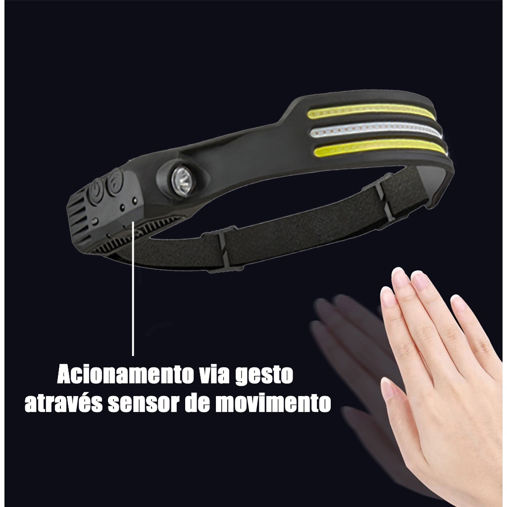 Lanterna com Sensor E Aprova Agua LED forte Recarregável Multifuncional com Bateria Embutida- Farol Poderoso com Vários Modos de Iluminação- Á Prova D'Água