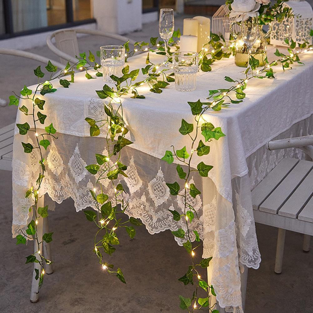 25 Metros Cordão de Hera Folha Planta Artificial Pendente Trepadeira + 3 Fio de fada 30 metros Led