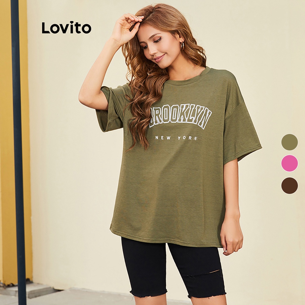 Lovito Camiseta Feminina Casual Com Estampa De Letras LNE31081 (Verde)