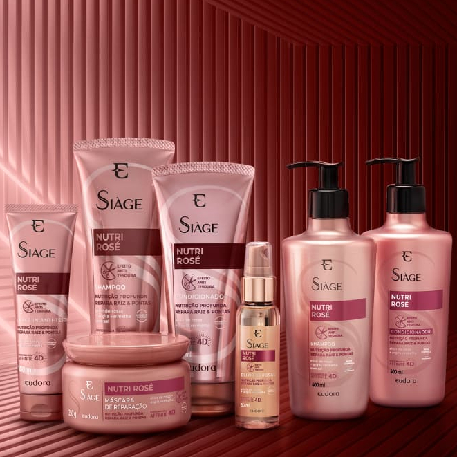 Eudora Linha Siàge Nutri Rosé Shampoo e Condicionador Regular | Refil | Bisnaga | Máscara de Reparação