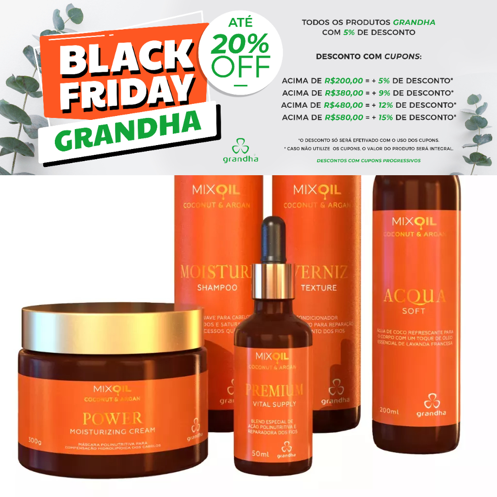 Grandha Banho Escova de Verniz Shampoo Condicionador Oleo Finalizador Mascara Hidratante Coconut MIx Oil Coco e Oleo de Argan