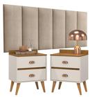 Conjunto Para Quarto Cabeceira Julia Casal 1,40 Bege com Duas Mesas de Cabeceira Suspensa Decor -