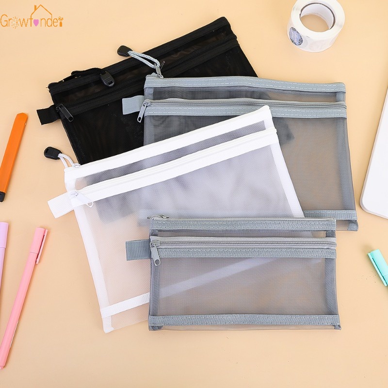 1Pc Estojo Multifuncional Colorido A4/A5/A6 Saco De Armazenamento De Caneta Com Zíper De Grande Capacidade Maquiagem De Dupla Camada De Malha Translúcido De Papelaria Para Estudantes Material De Escritório Escolar